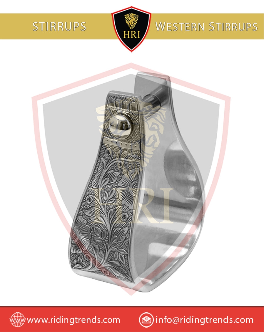 Aluminium Polish Western Engraved Wide Pad Stirrups
