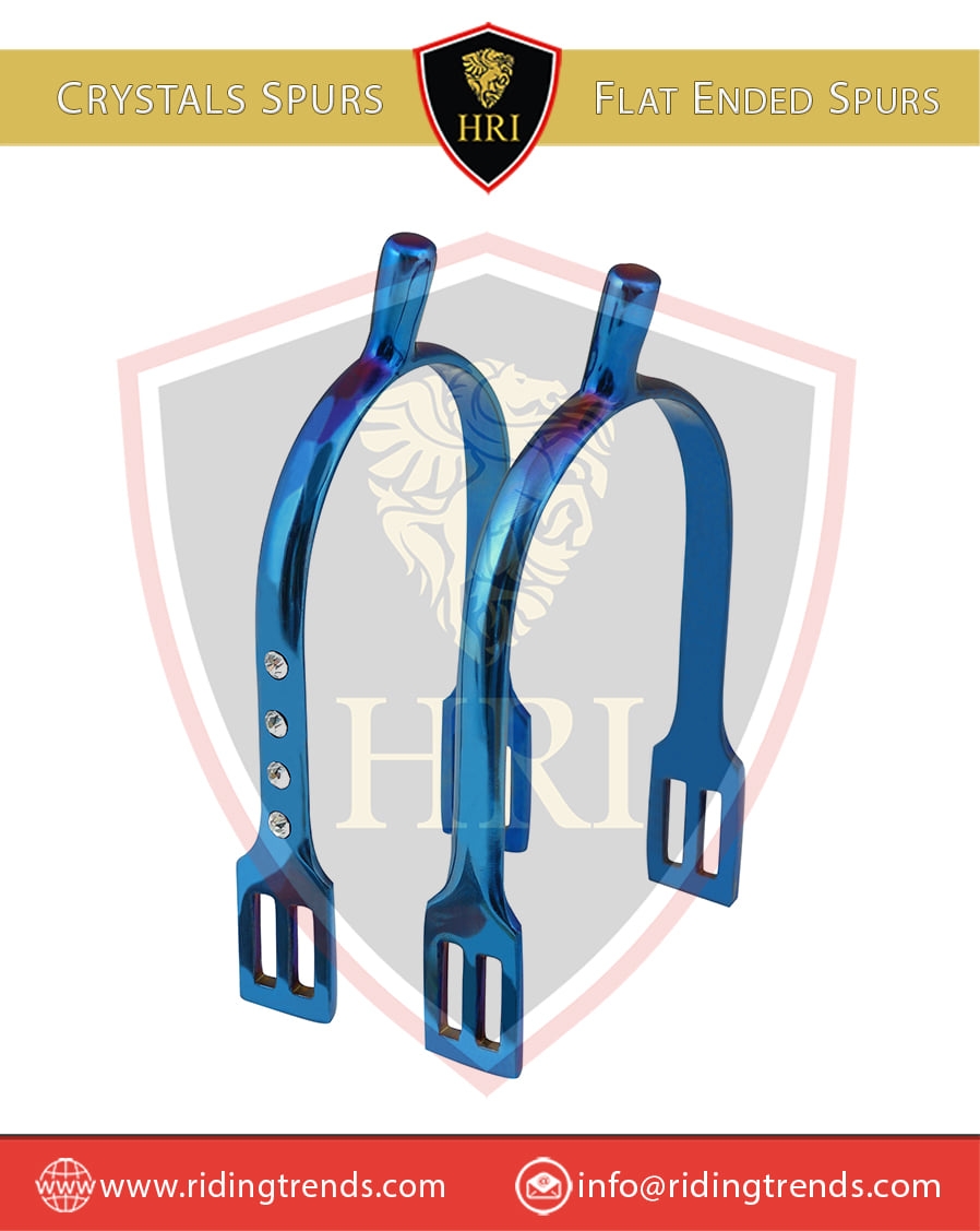 Stainless Steel Flat Shank Titanium Blue Spurs with Crystals