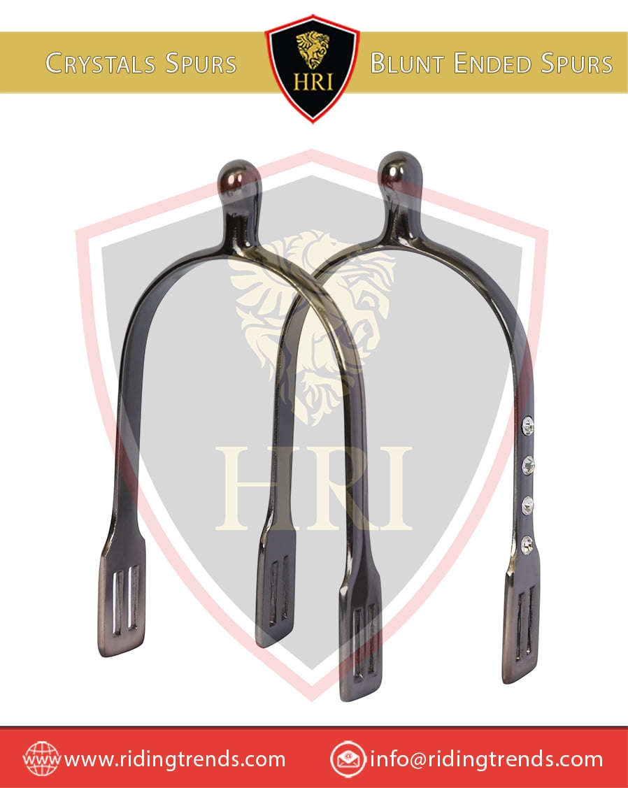 Stainless Steel Blunt Ended Antique Black Spurs with Crystals