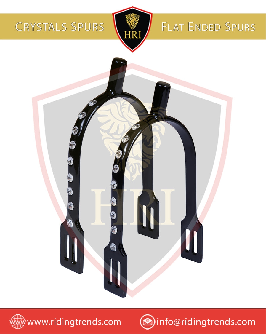 Stainless Steel Flat Shank Black Color Spurs with Crystals