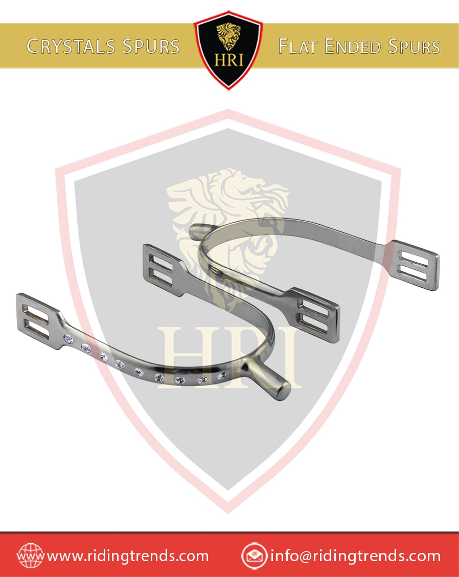 Stainless Steel Flat Shank Polish Spurs with Crystals