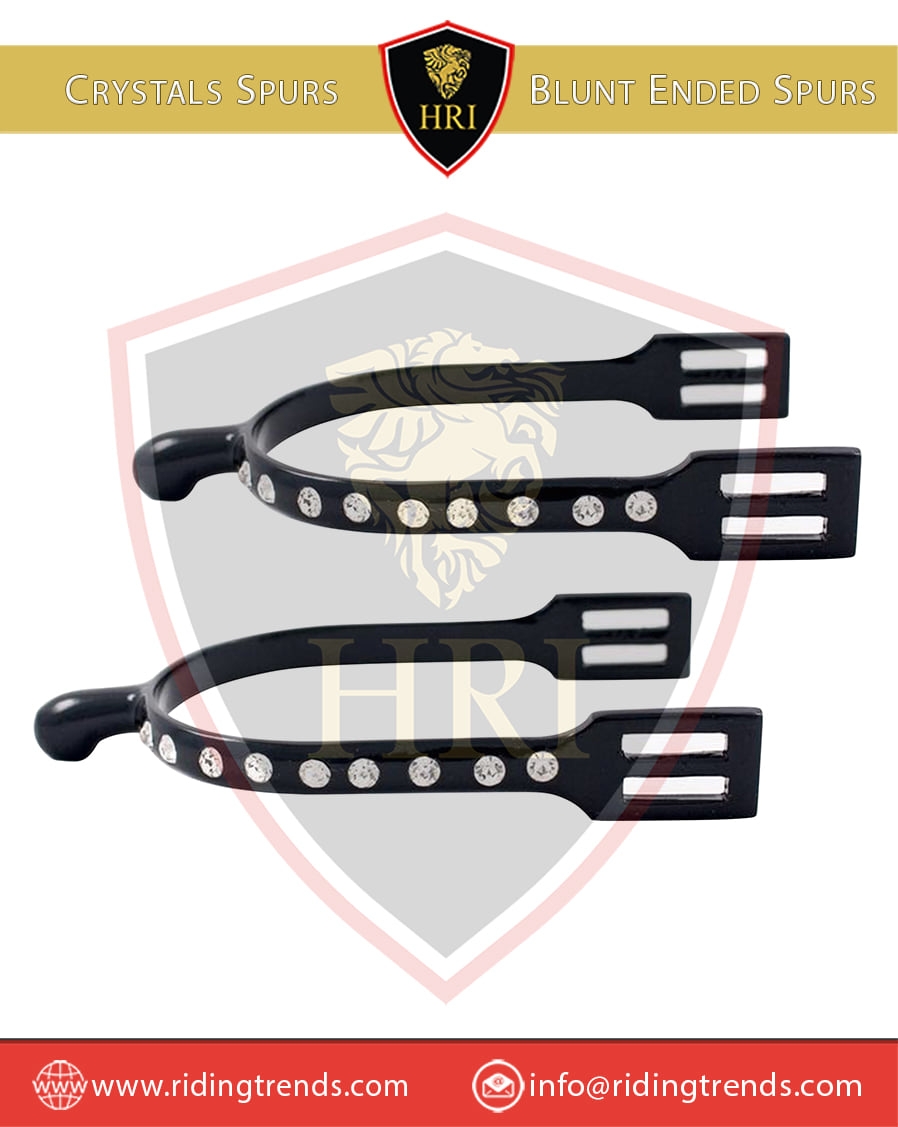 Stainless Steel Blunt Ended Black Color Spurs with Crystals