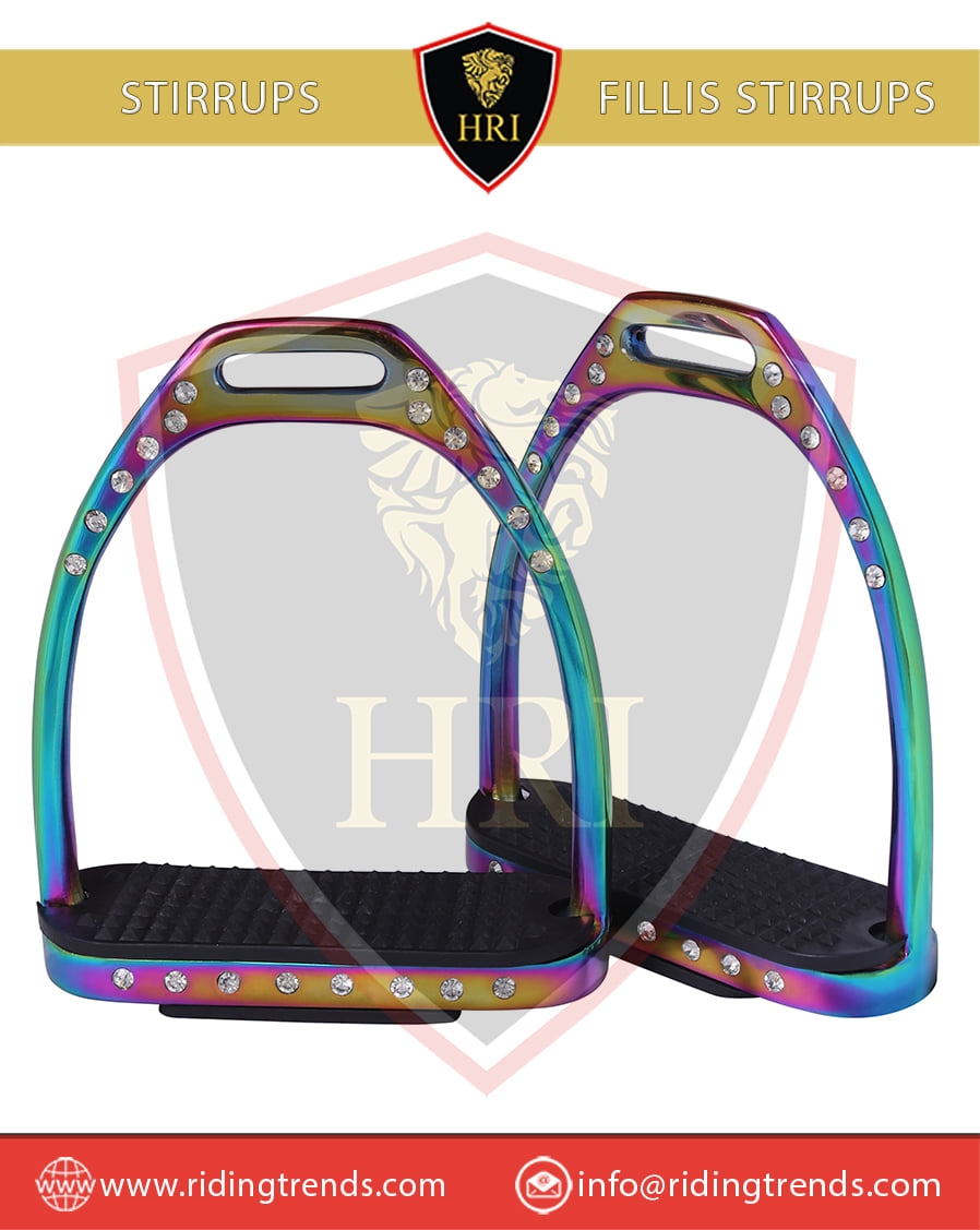 Stainless Steel Titanium Rainbow Fillis Stirrups with Crystals