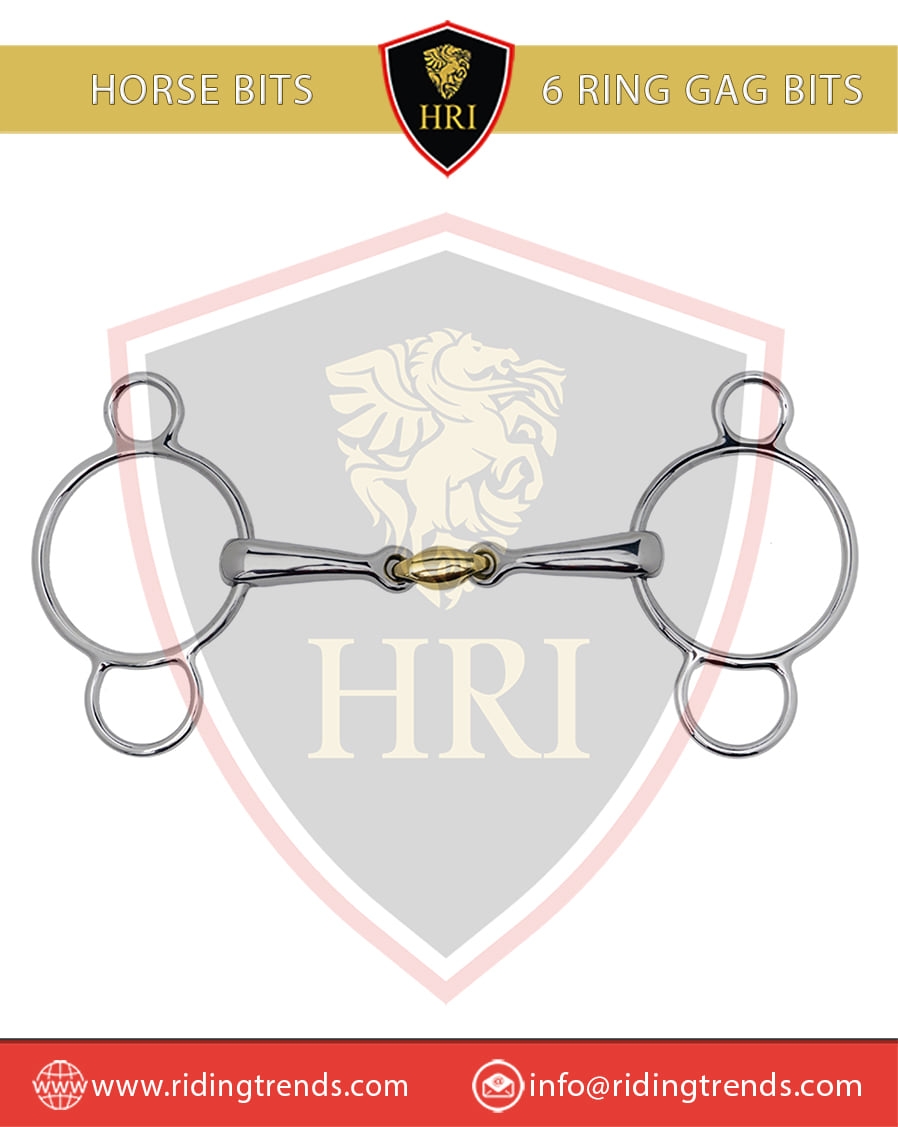 Stainless Steel Ported Mouth Gold 6 Ring Gag Easy Control Bits