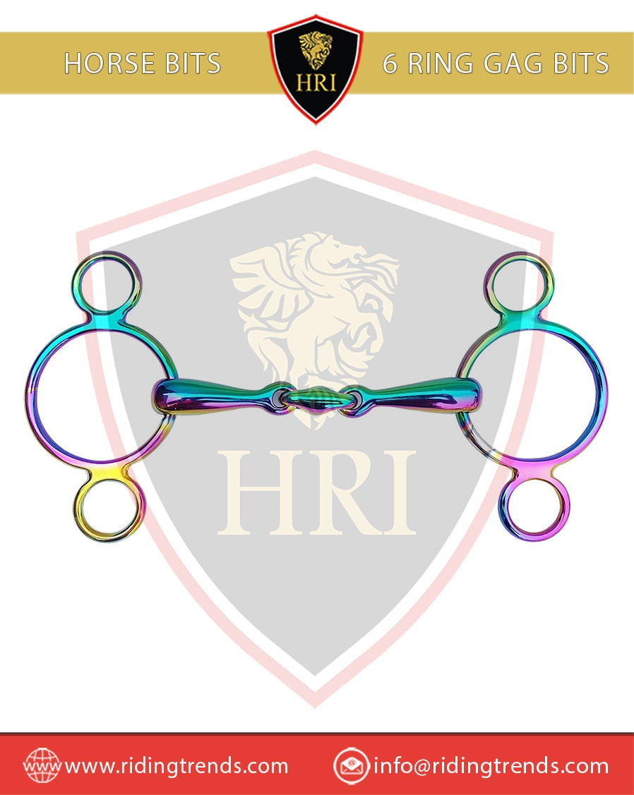 Stainless Steel Double Jointed Titanium Rainbow 6 Ring Gag Bits