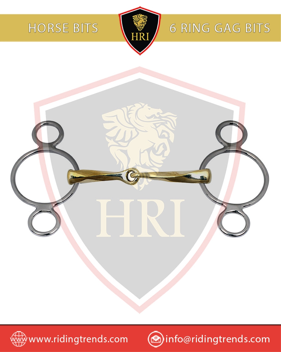 Stainless Steel with Brass Link Double Jointed 6 Ring Universal Gag Bits