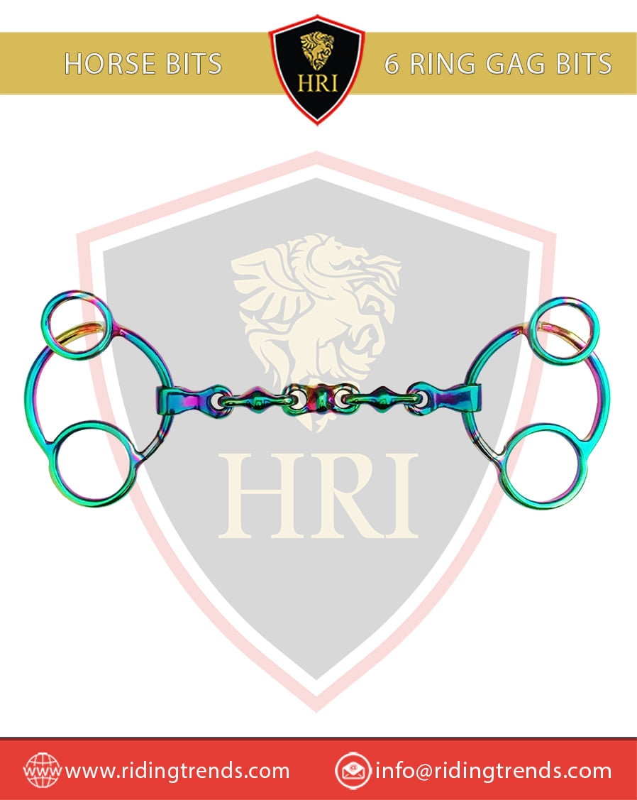 Stainless Steel Double Jointed Blue Alloy Brass Roller 6 Ring Gag Bits