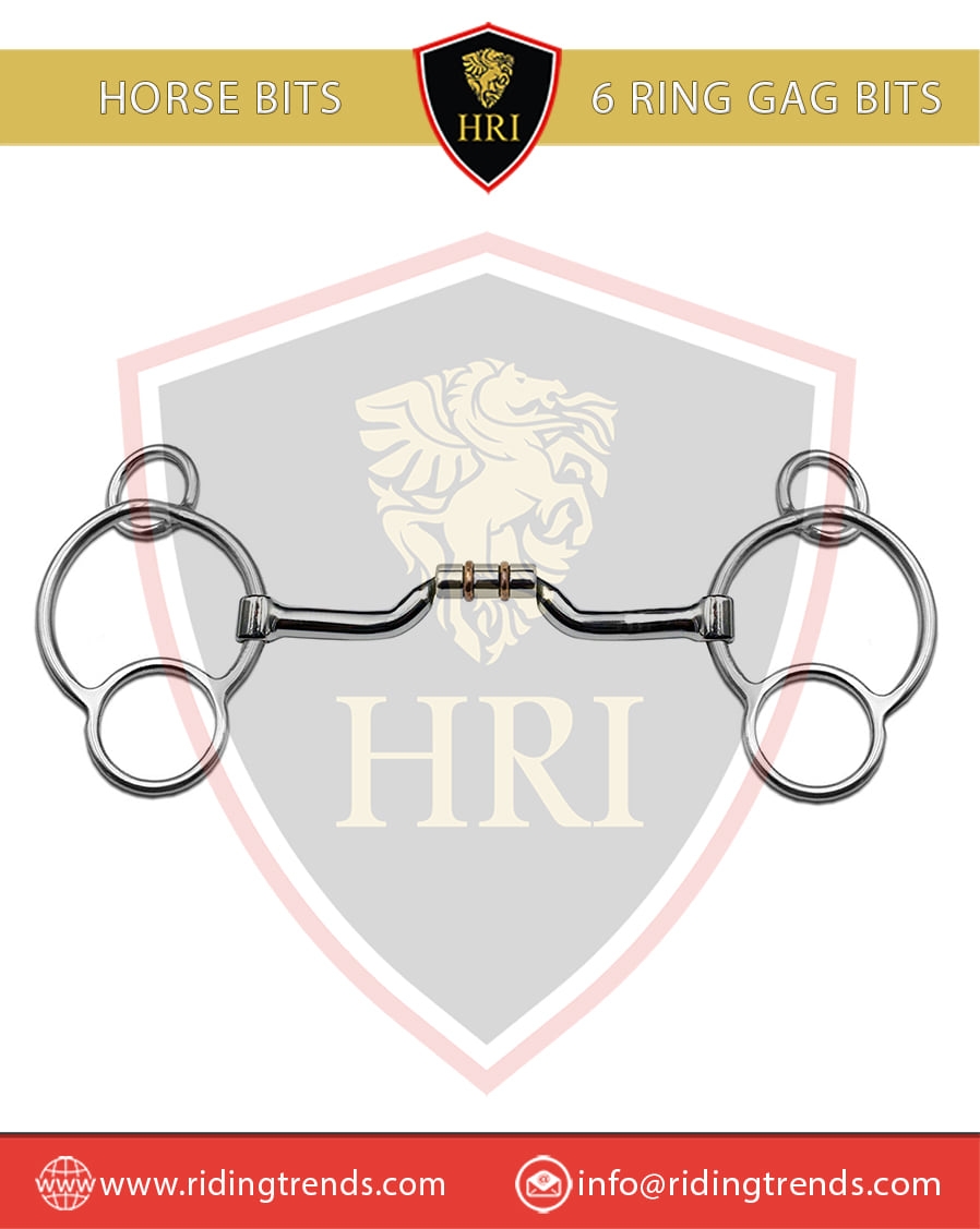 Stainless Steel with Copper Link Double Jointed Sweet Iron 6 Ring Gag Bits