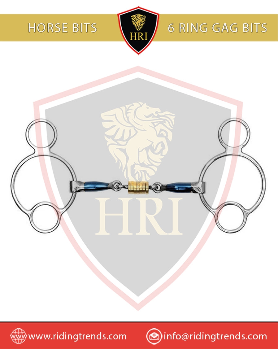 Stainless Steel Double Jointed Blue Alloy 6 Ring Gag Bits
