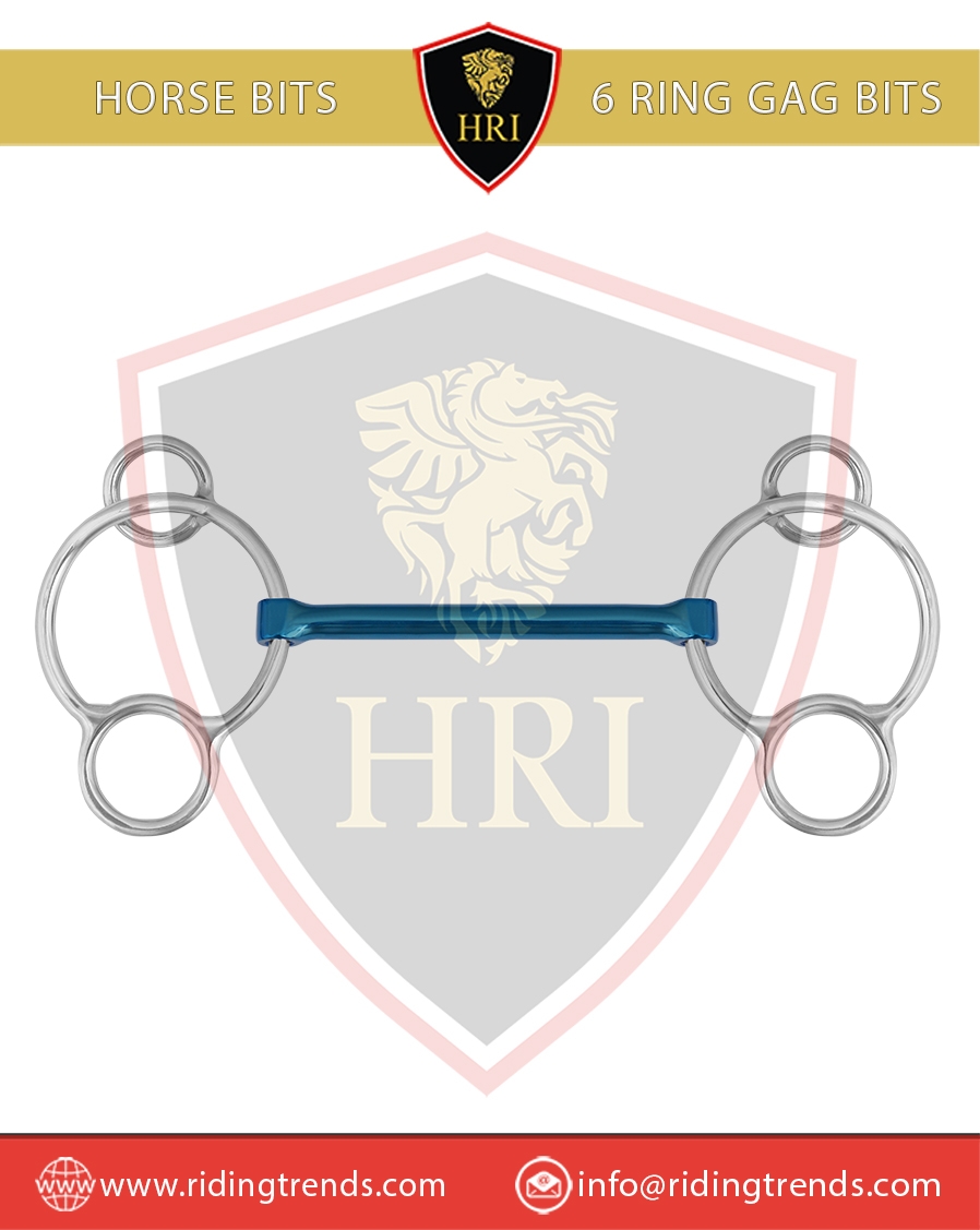 Stainless Steel Single Jointed Blue Alloy 6 Ring Gag Bits