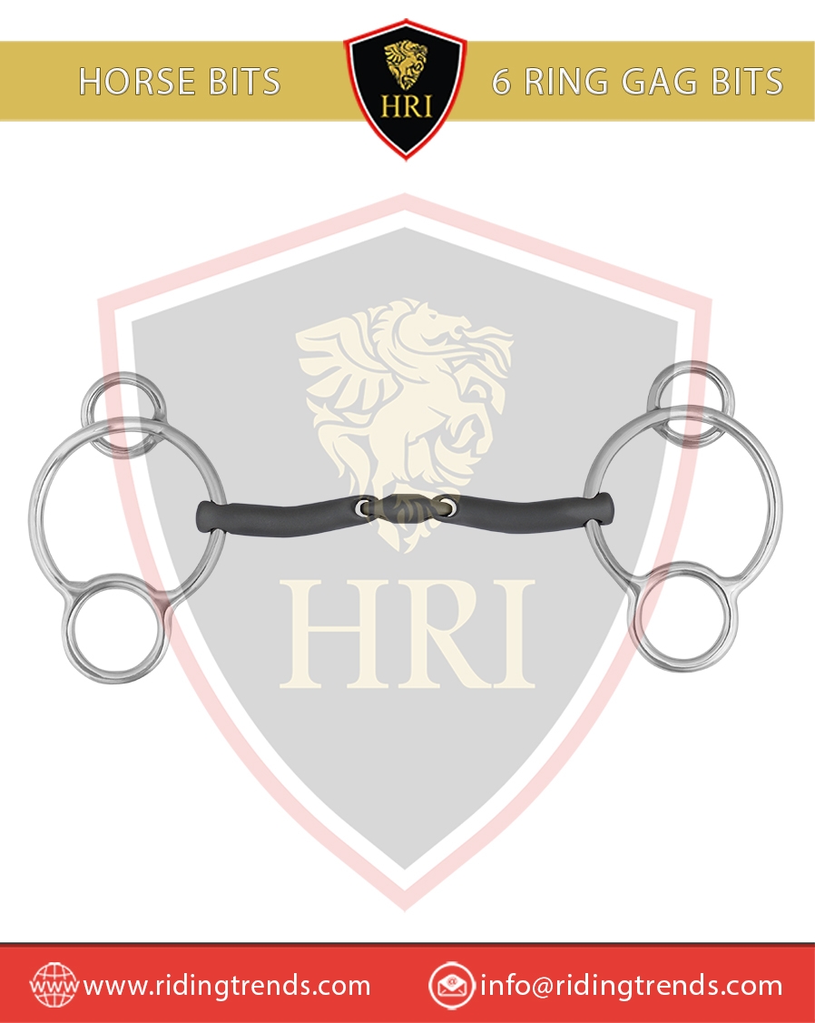 Stainless Steel Double Jointed Brass Link 6 Ring Gag Polish Bits