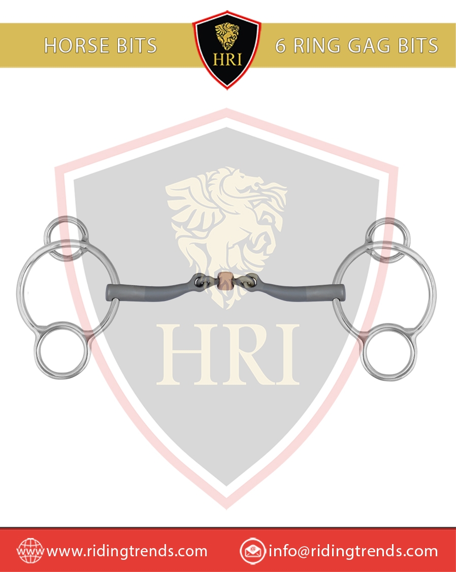 Stainless Steel Double Jointed Blue Alloy 6 Ring Gag Bits