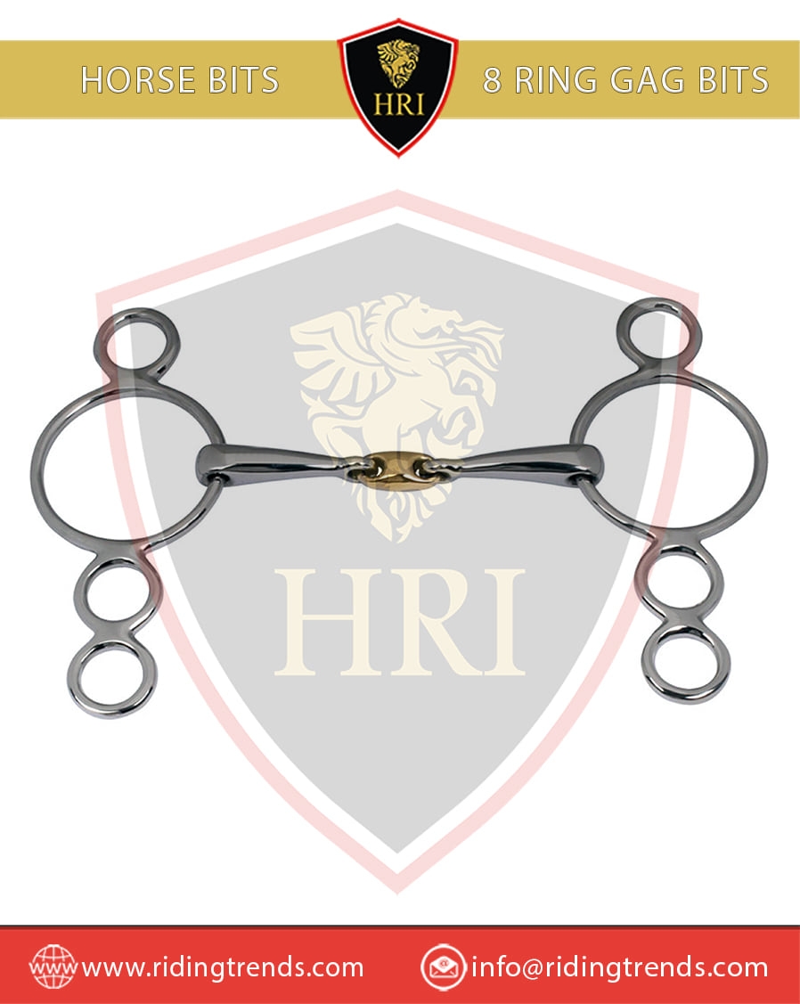 Stainless Steel Double Jointed Brass Link Polish 8 Ring Gag Bits