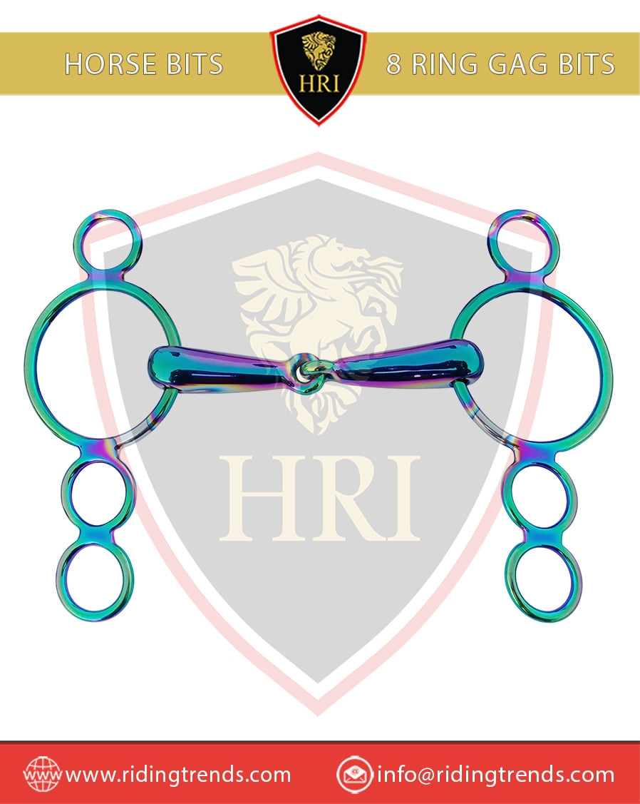 Stainless Steel Double Jointed Blue Alloy 8 Ring Gag Bits