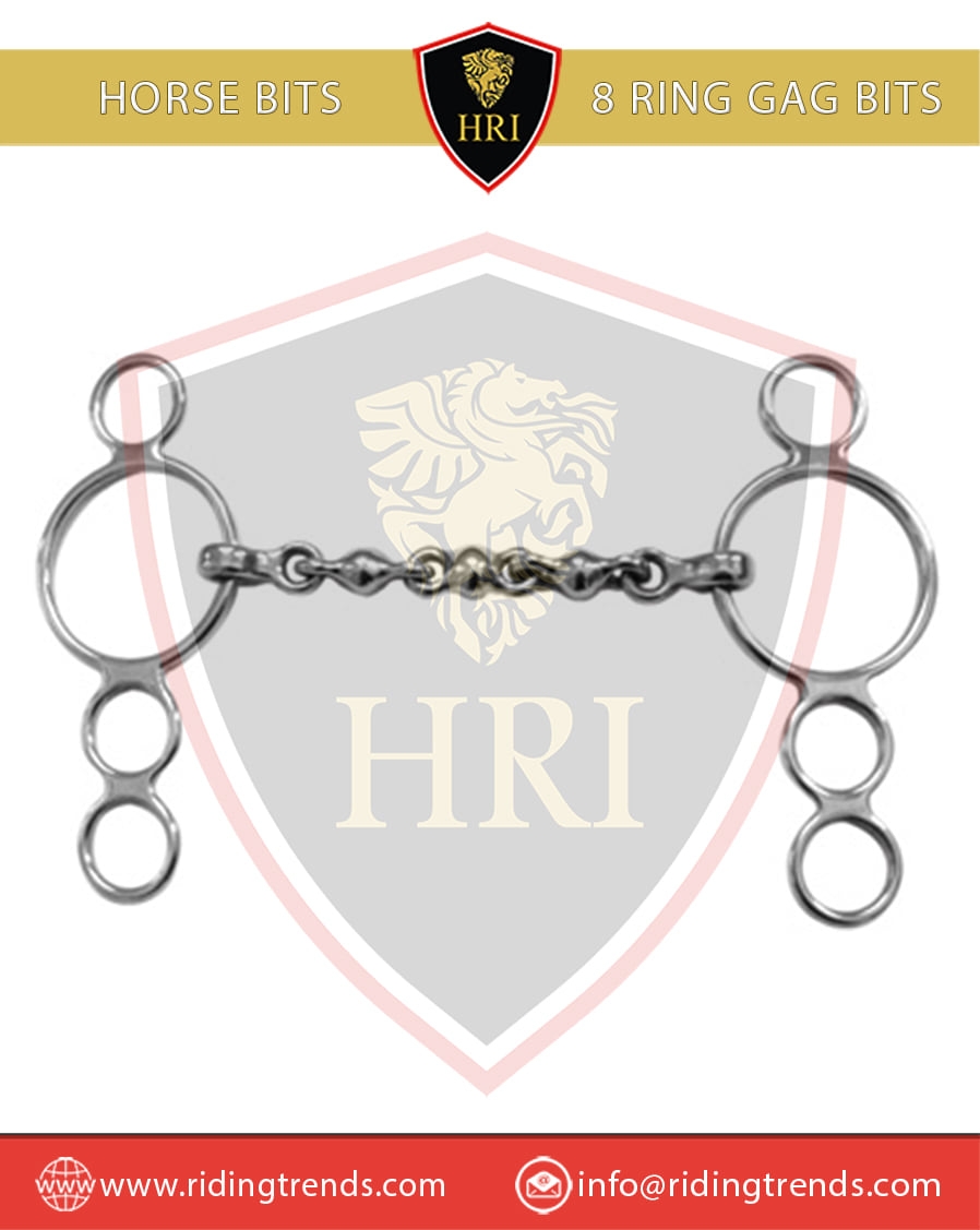 Stainless Steel Double Jointed Polish 8 Ring Gag Bits