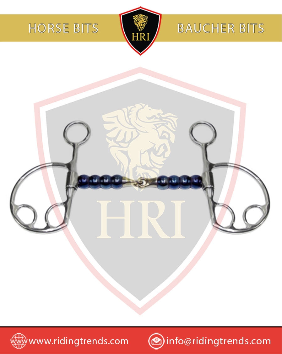 Stainless Steel with Sweet Iron Single Jointed Blue Alloy Roller Baucher Gag Bits