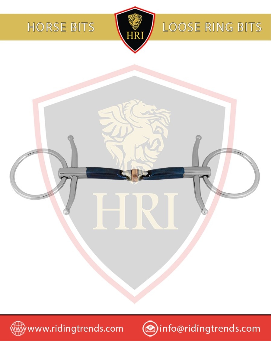 SS with Sweet Iron Double Jointed Copper Filled Blue Alloy Loose Ring Cheek Bits