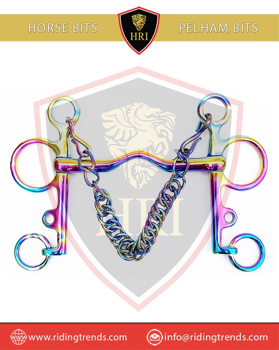 Stainless Steel Ported Mouth Titanium Rainbow Pelham Bits