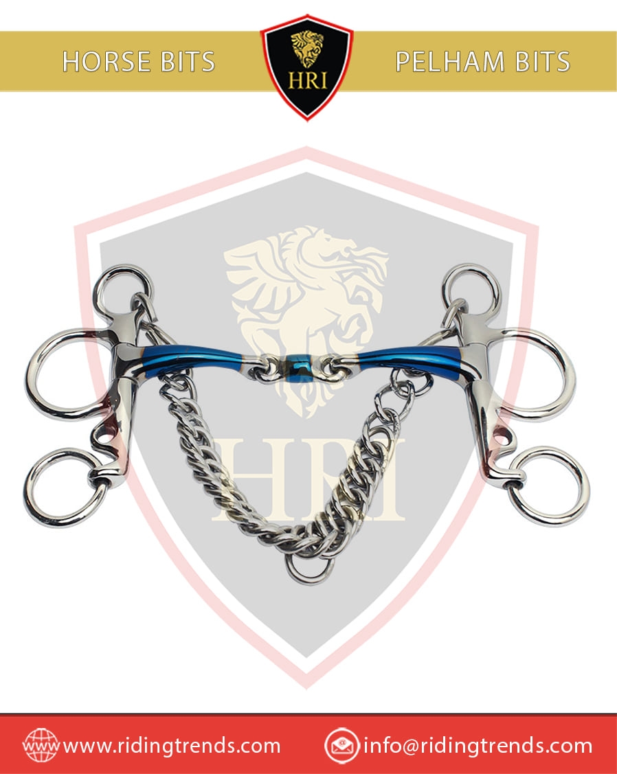 Stainless Steel with Double Jointed Blue Sweet Iron Pelham Bits