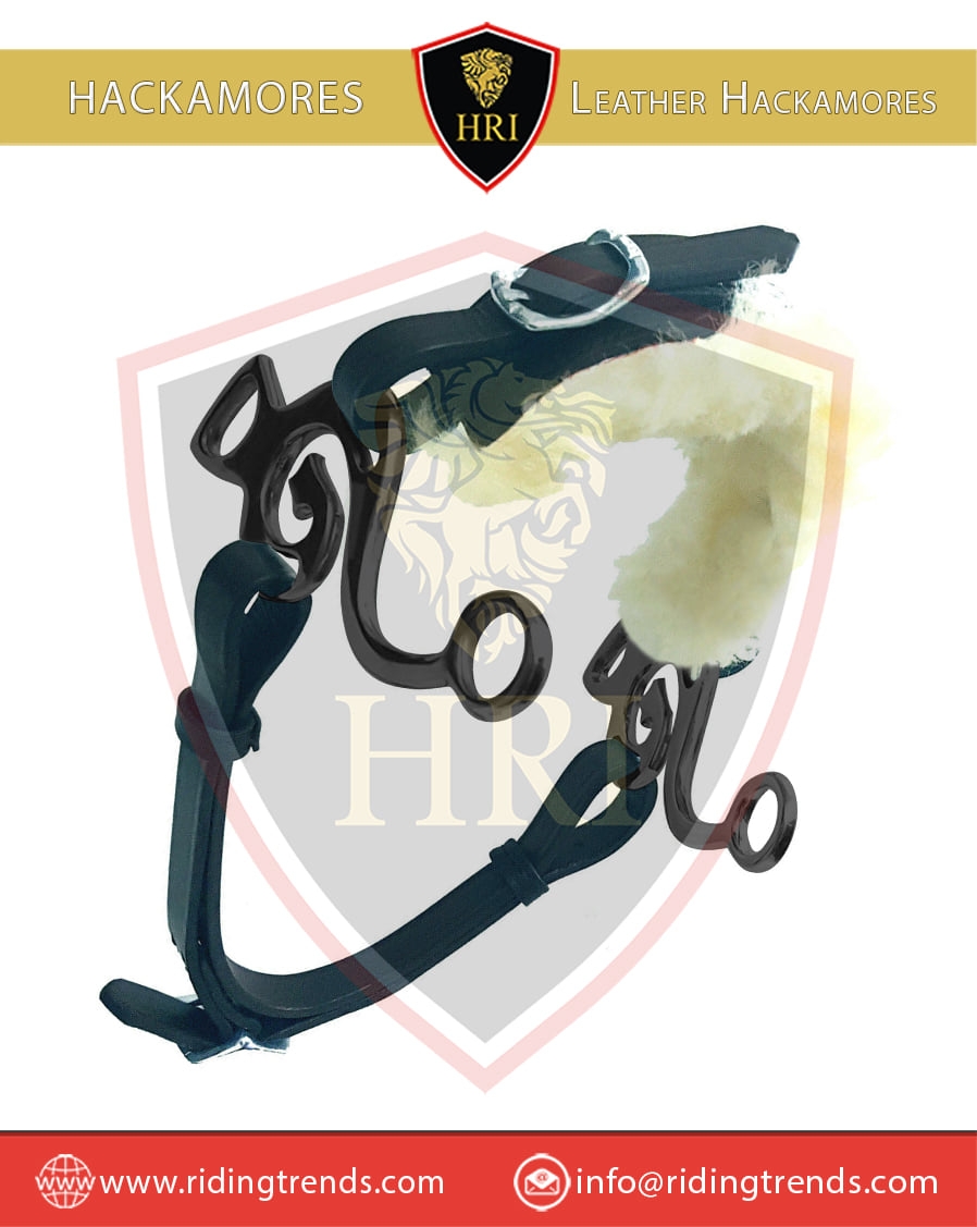 Stainless Steel Polish Baroque & Black Leather Sheep Skin Lined Hackamores