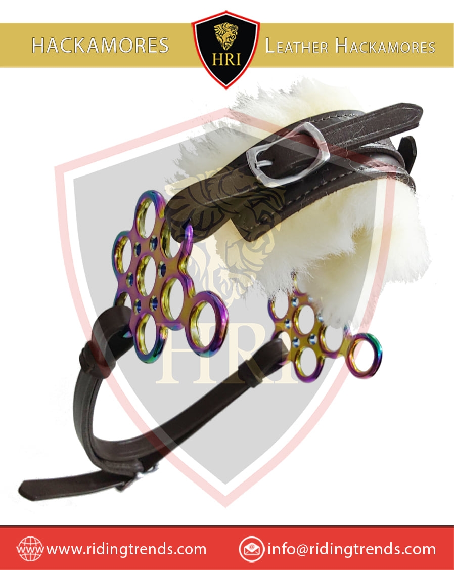 Stainless Steel Rainbow Flower & Brown Leather Sheep Skin Lined Hackamores