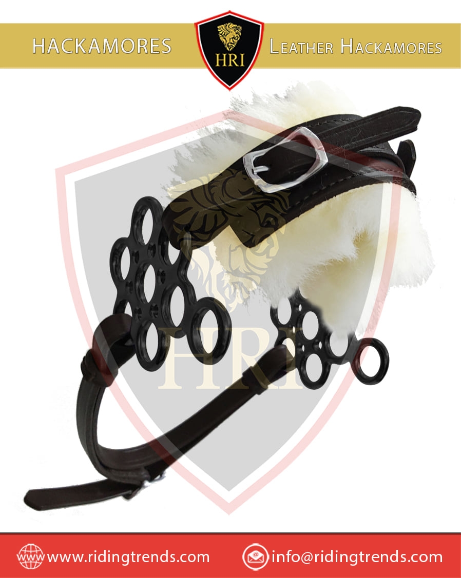 Stainless Steel Black Flower & Brown Leather Sheep Skin Lined Hackamores