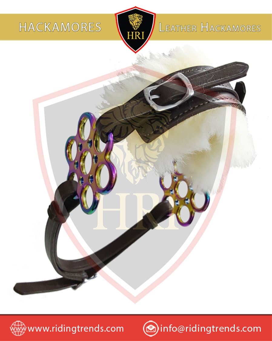 Stainless Steel Rainbow Flower & Brown Leather Sheep Skin Lined Hackamores