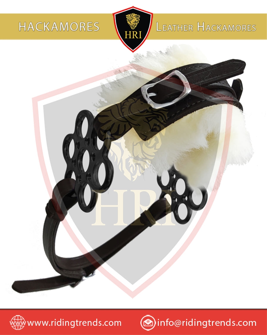 Stainless Steel Black Flower & Black Leather Sheep Skin Lined Hackamores