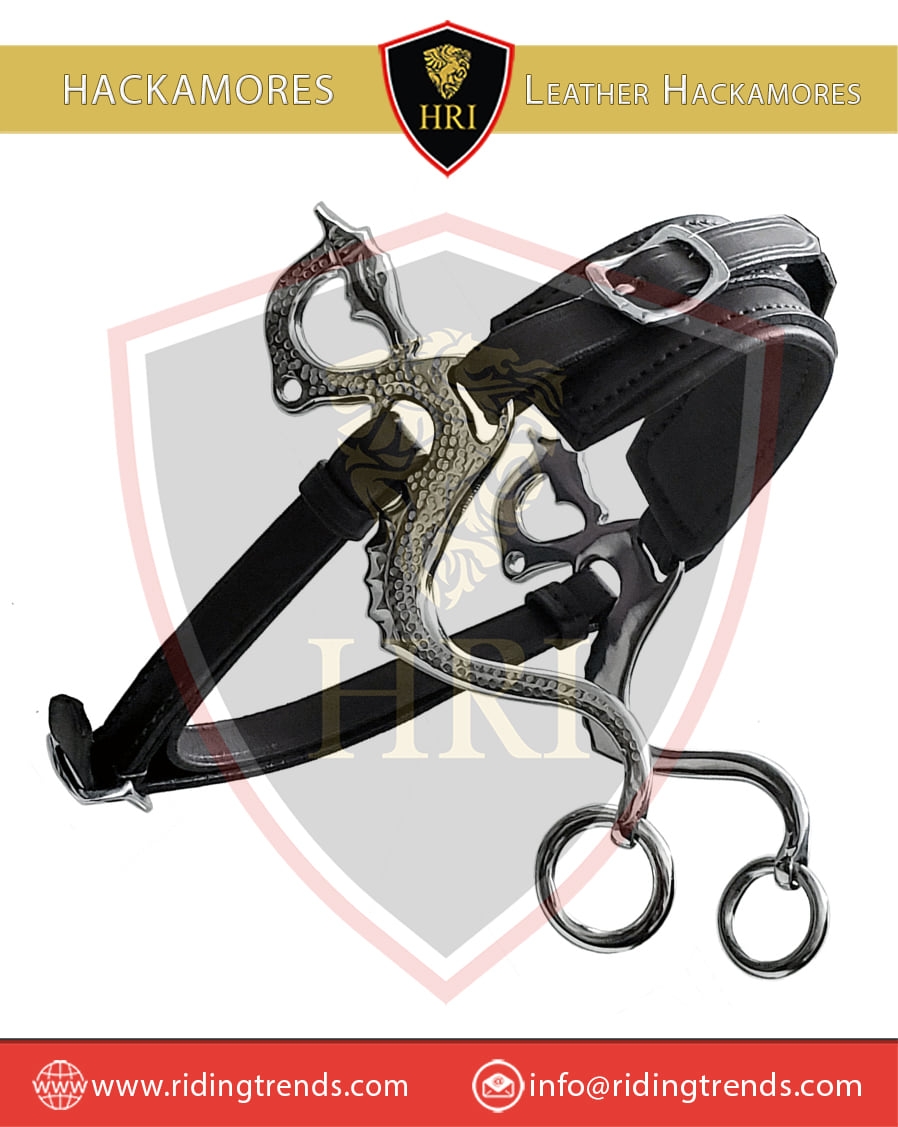 Stainless Steel Fully Black Dragon Leather Engraving Hackamores