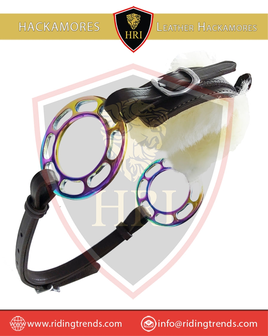 Stainless Steel Rainbow Wheel & Black Leather Hackamores
