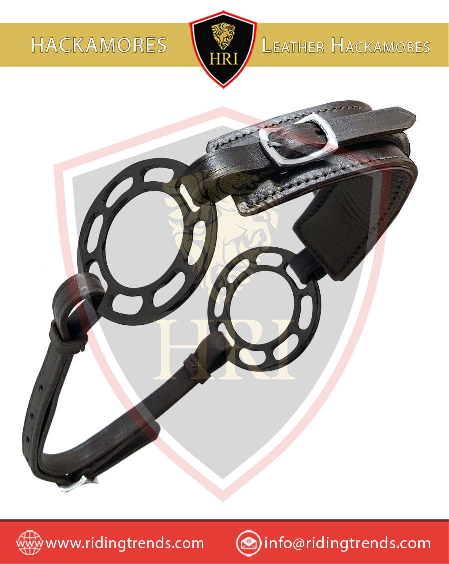 Stainless Steel Black Wheel & Black Leather Hackamores