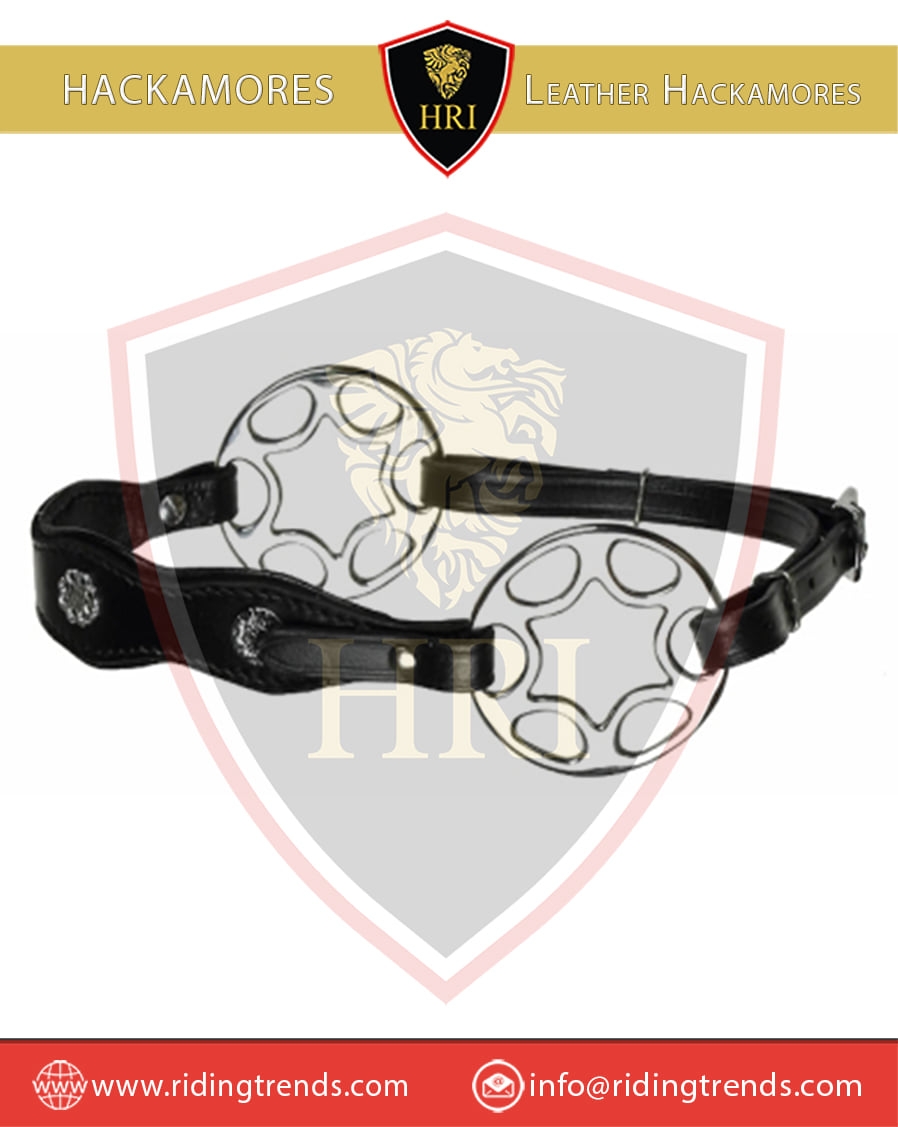 Stainless Steel Polish Star Wheel & Black Leather Hackamores