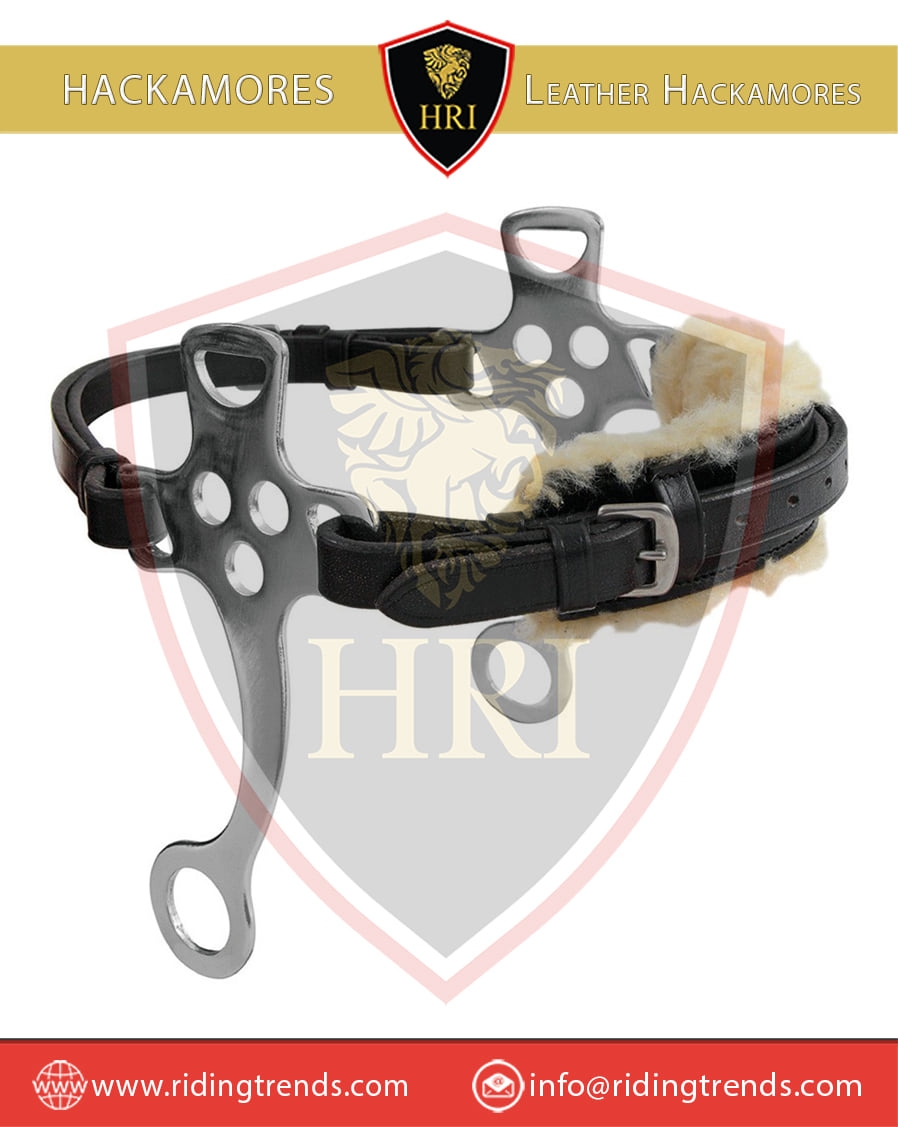 Stainless Steel Polish Traditional & Black Leather Sheep Skin Lined Hackamores