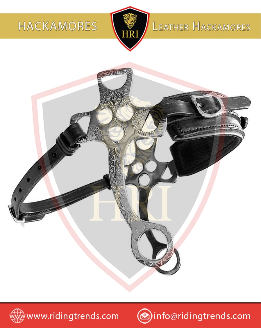 Stainless Steel Polish Traditional & Black Leather Engraving Hackamores