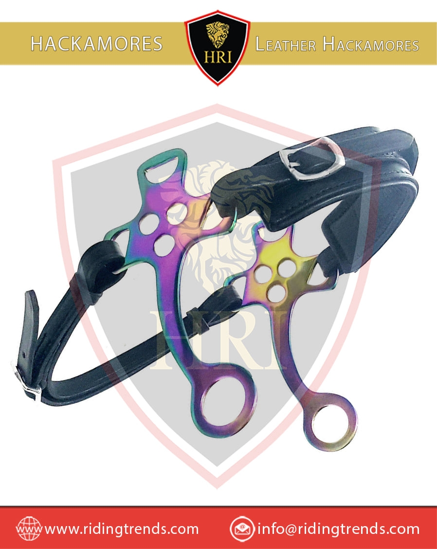 Stainless Steel Rainbow Traditional & Black Leather Hackamores