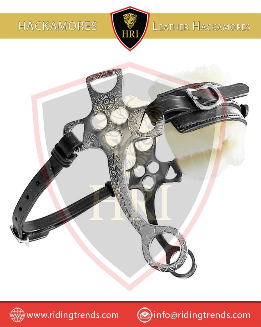 Stainless Steel Polish Traditional & Black Leather Sheep Skin Lined Engraving Hackamores
