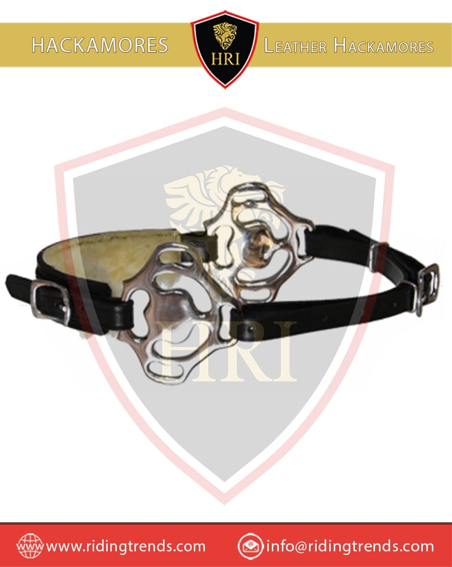 Stainless Steel Polish Center & Black Leather Hackamores