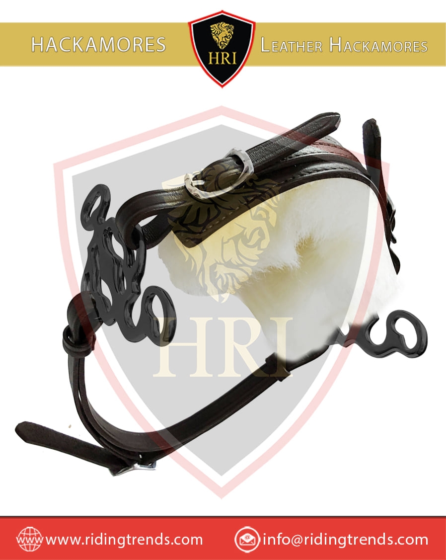 Stainless Steel Polish Western & Black Leather Sheep Skin Lined Hackamores