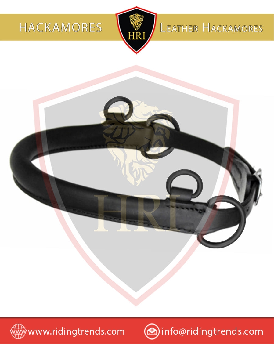 Stainless Steel Black Jumping & Black Leather Hackamores