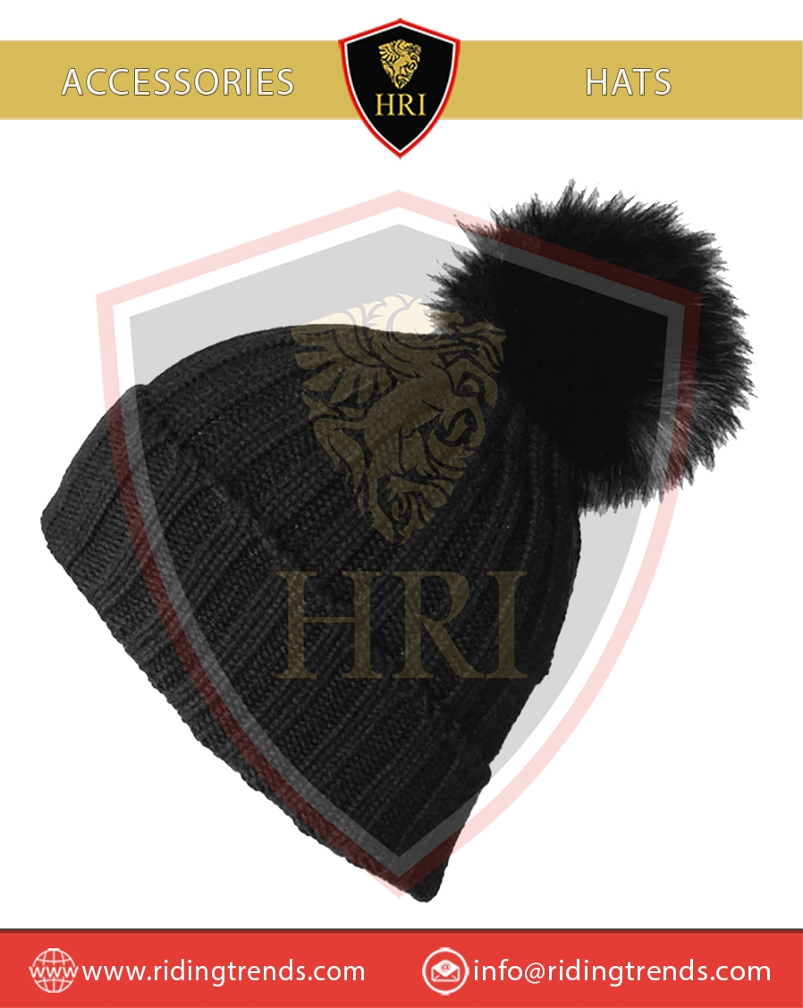 Black Acrylic Knitted Warm Pom Pom Beanie Hats